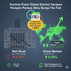 Analisis Dinamika Pasar Wall Street dan Kebijakan The Fed Berdasarkan laporan terbaru, pasar saham Amerika Serikat menunjukkan pergerakan yang beragam namun dengan sentimen dasar yang condong ke arah optimisme terhadap ….